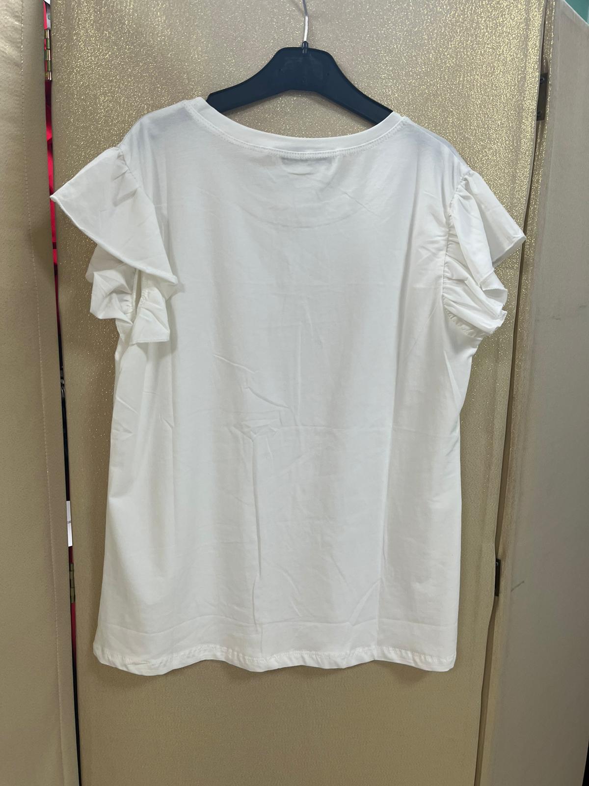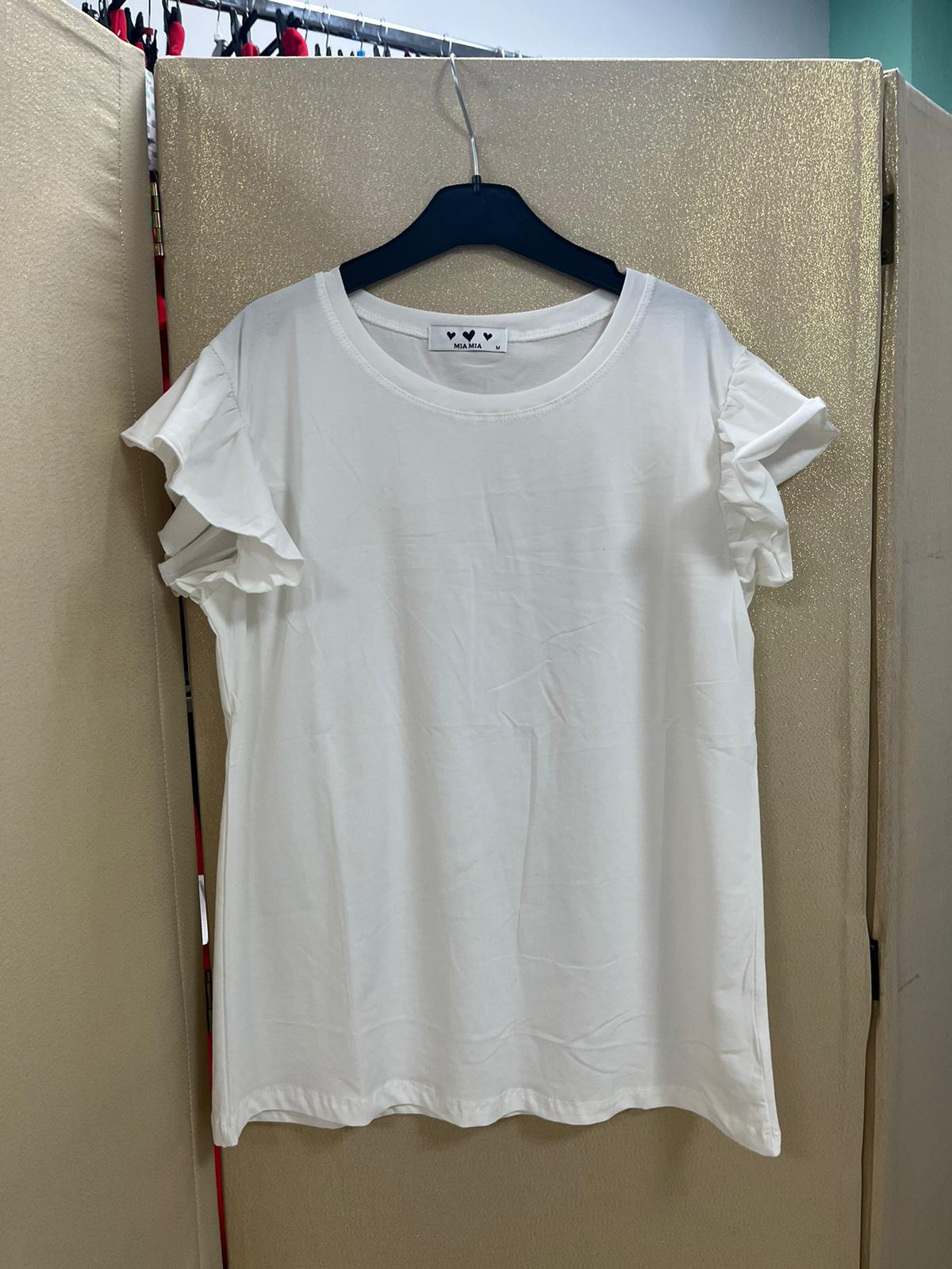 Camiseta blanca de algodón , con manga un poco fruncida, con mucha comodidad.