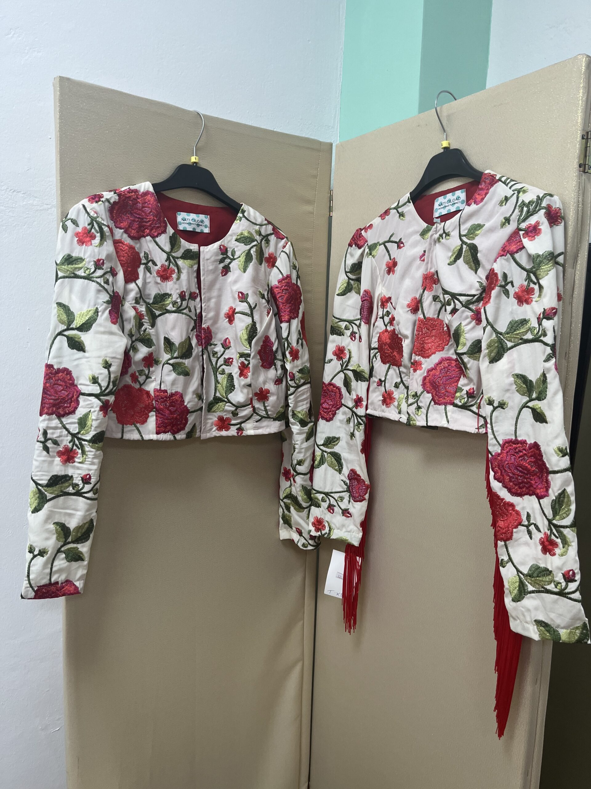 CHAQUETAS EN TEJIDO BORDADO CON MUCHO ARTE, TALLAS MUY MUY PEQUES DE AHI SU PRECIO DE RETIRADA DE PRODUCTO .