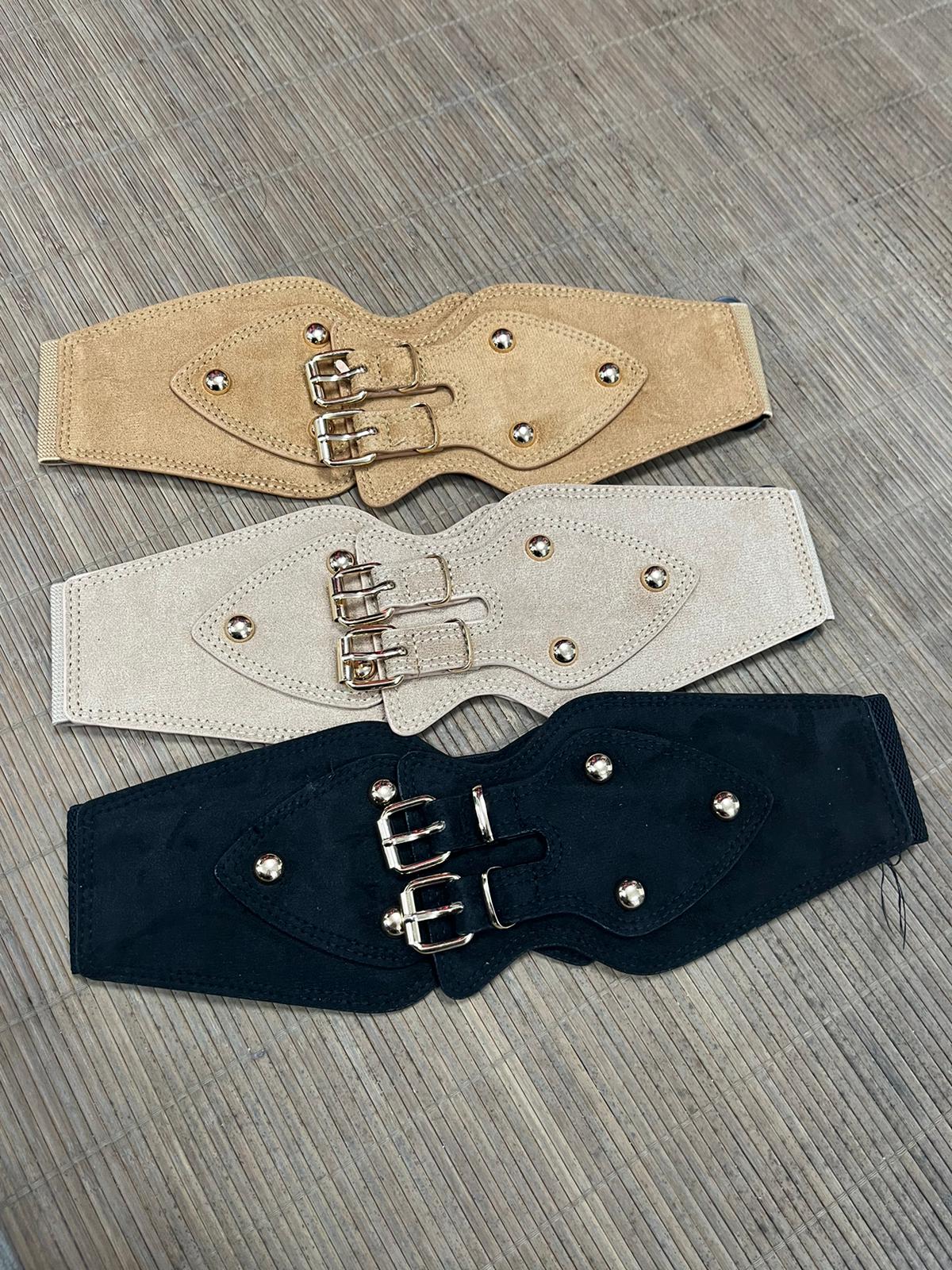 CINTURON ELASTICO CON MUCHO ARTE , TRES COLORE , NEGRO , CAMEL Y BEIG