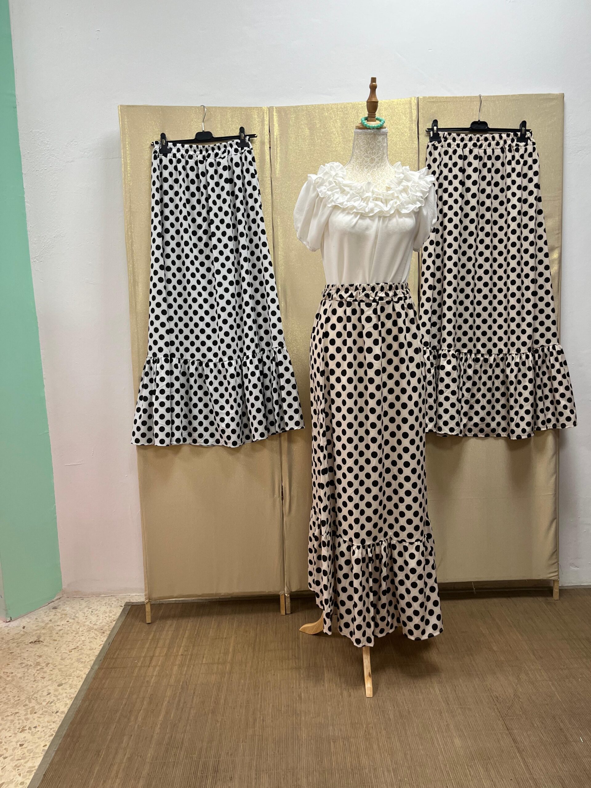 FALDA LUNAR CON FONDO BEIGE O BLANCO Y LUNAR NEGRO