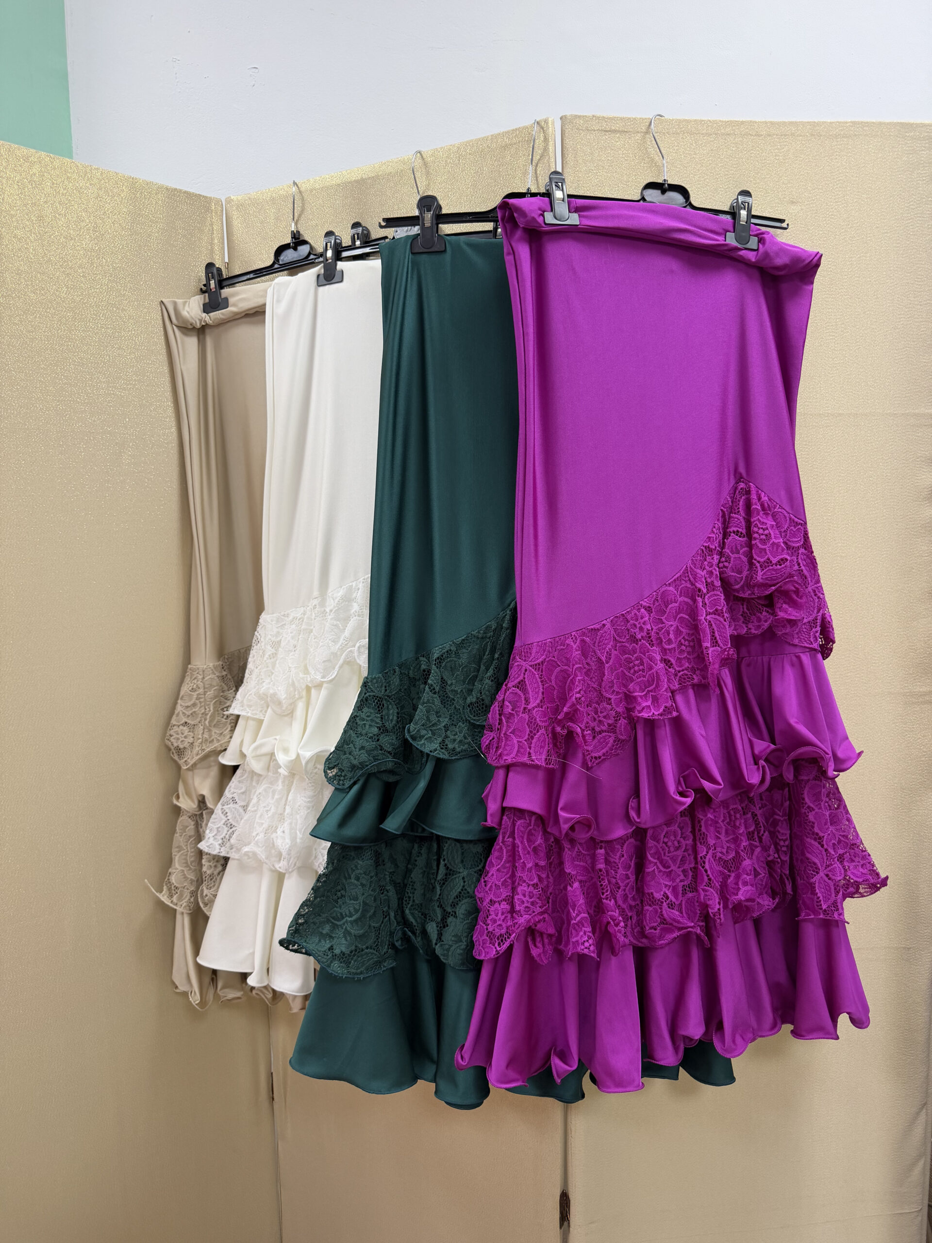 Faldas de licra fría y encaje, elásticas para una comodidad absoluta.