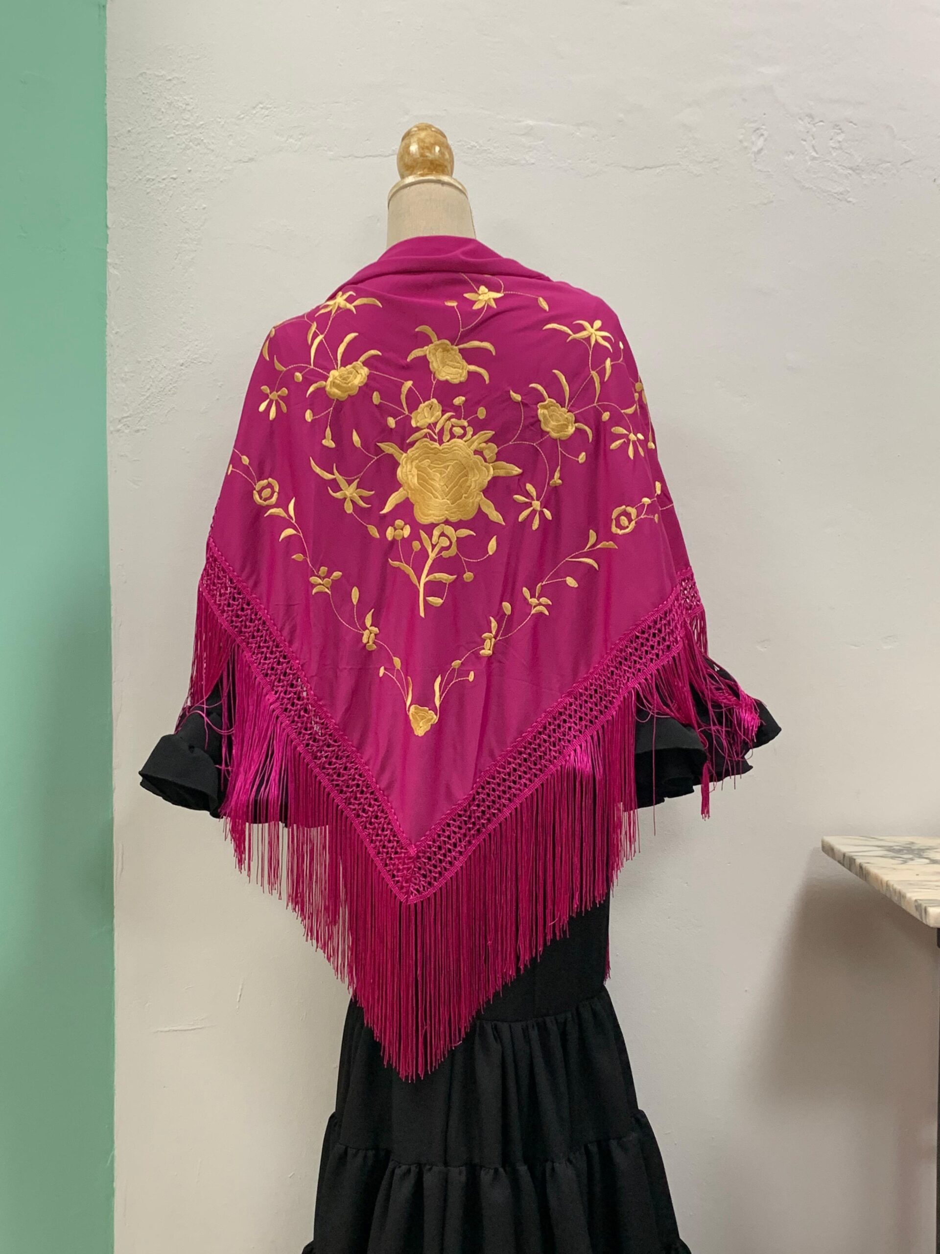 Mantón buganvilla punto de 1.35 cm x 0.76 cm + flecos de 18 cm