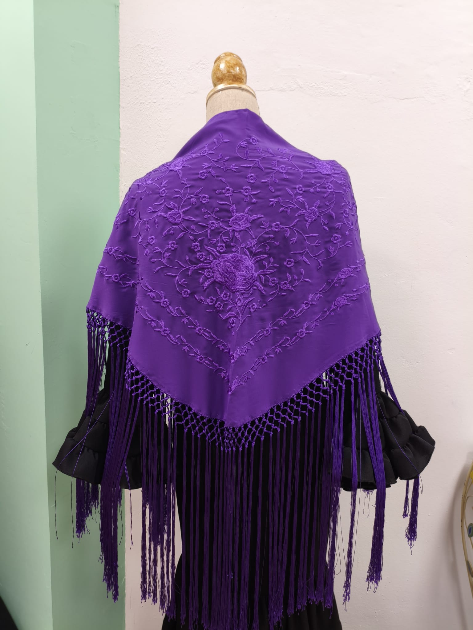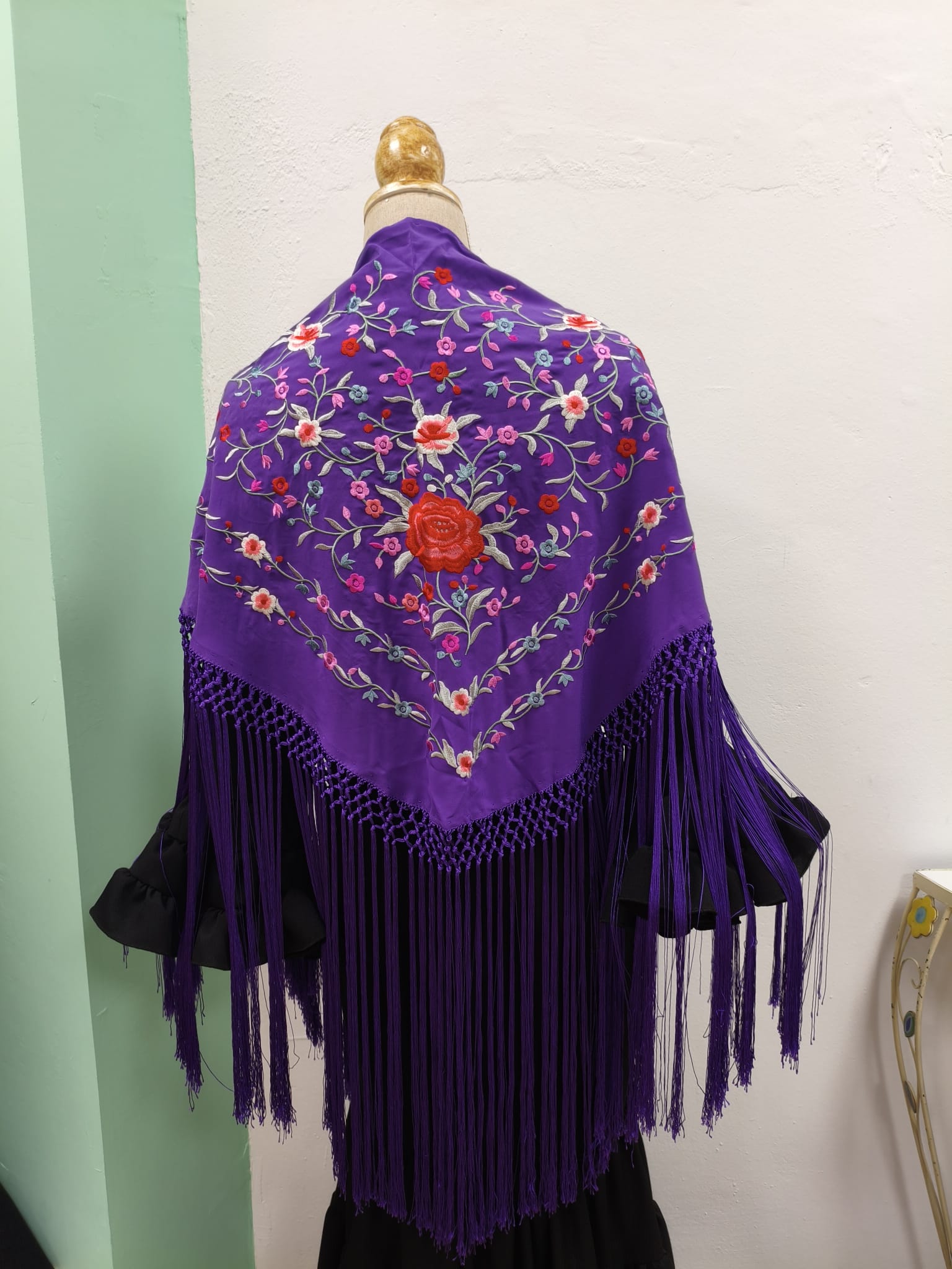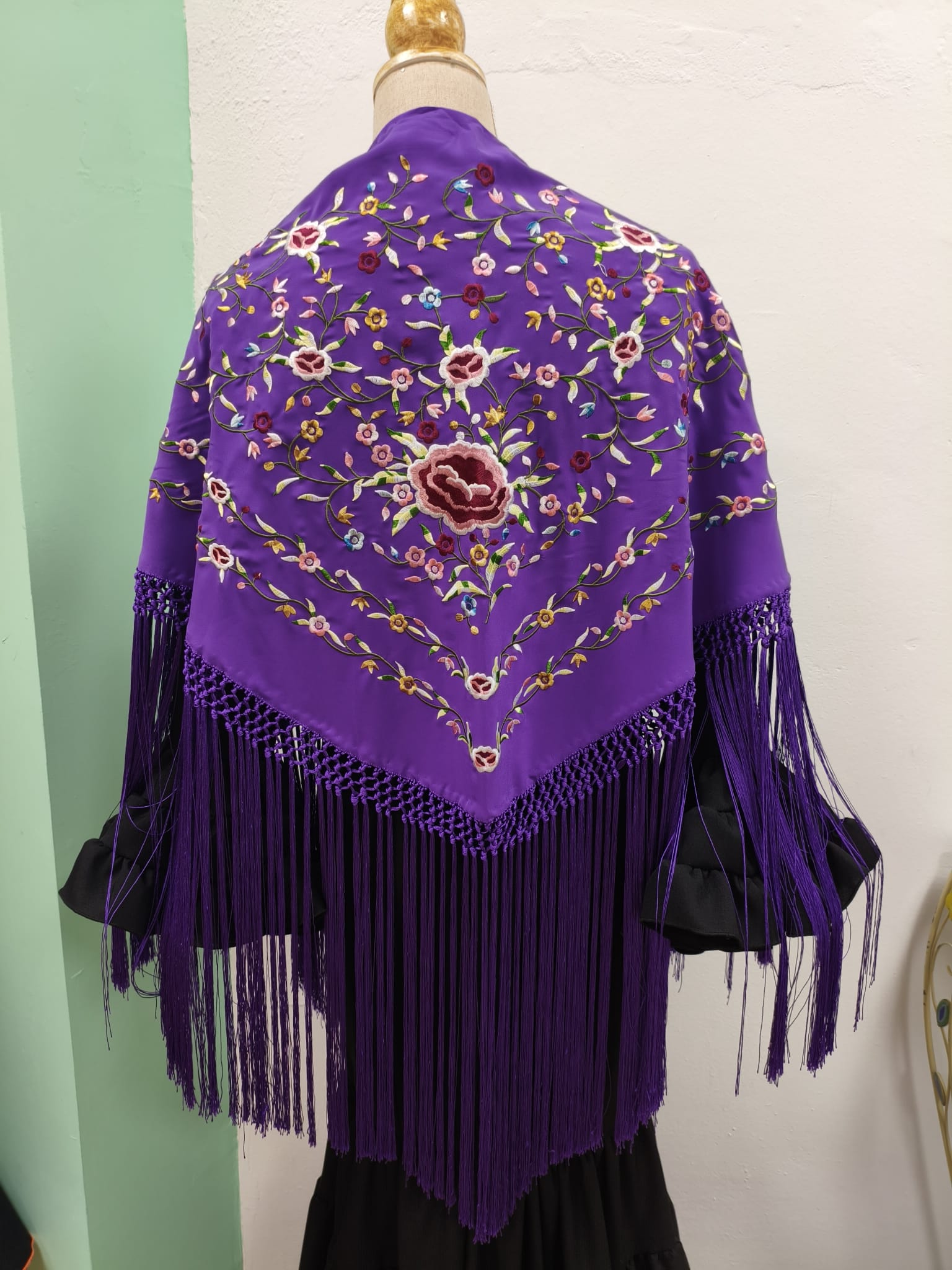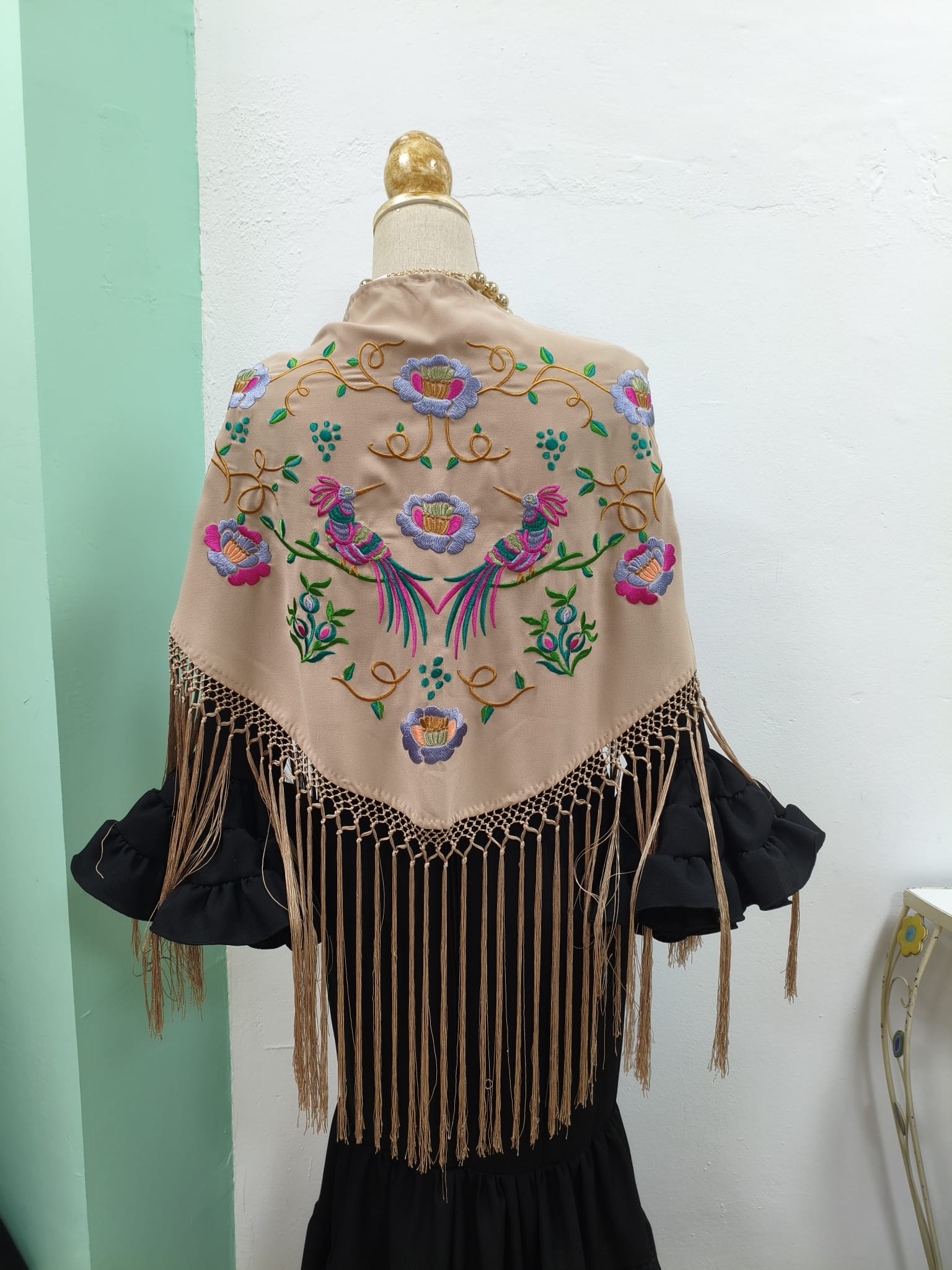 MANTON BORDADO Y FLECADO CON FLECOS MEDIO LARGOS, ESTILO Y ELEGANCIA.
