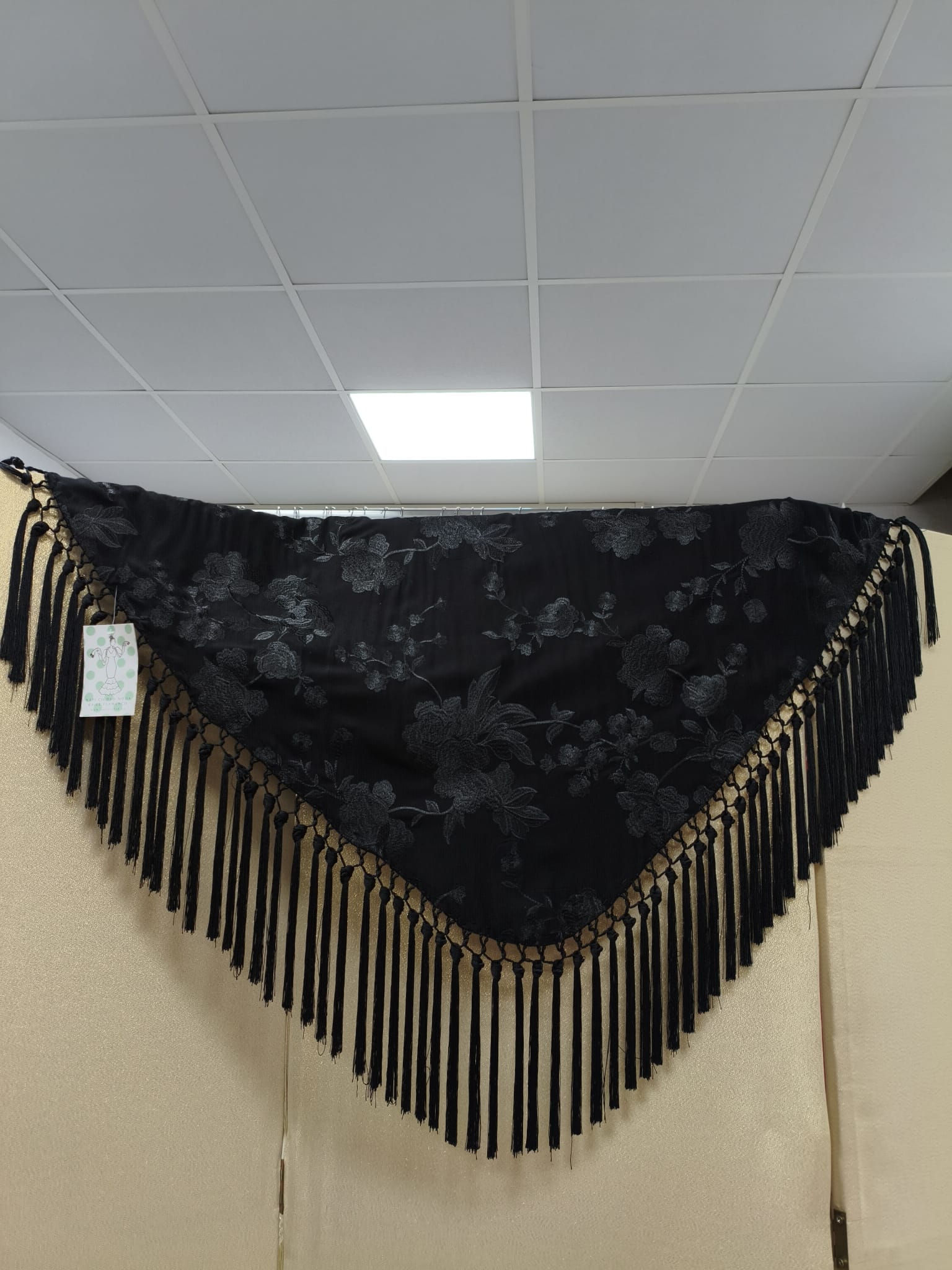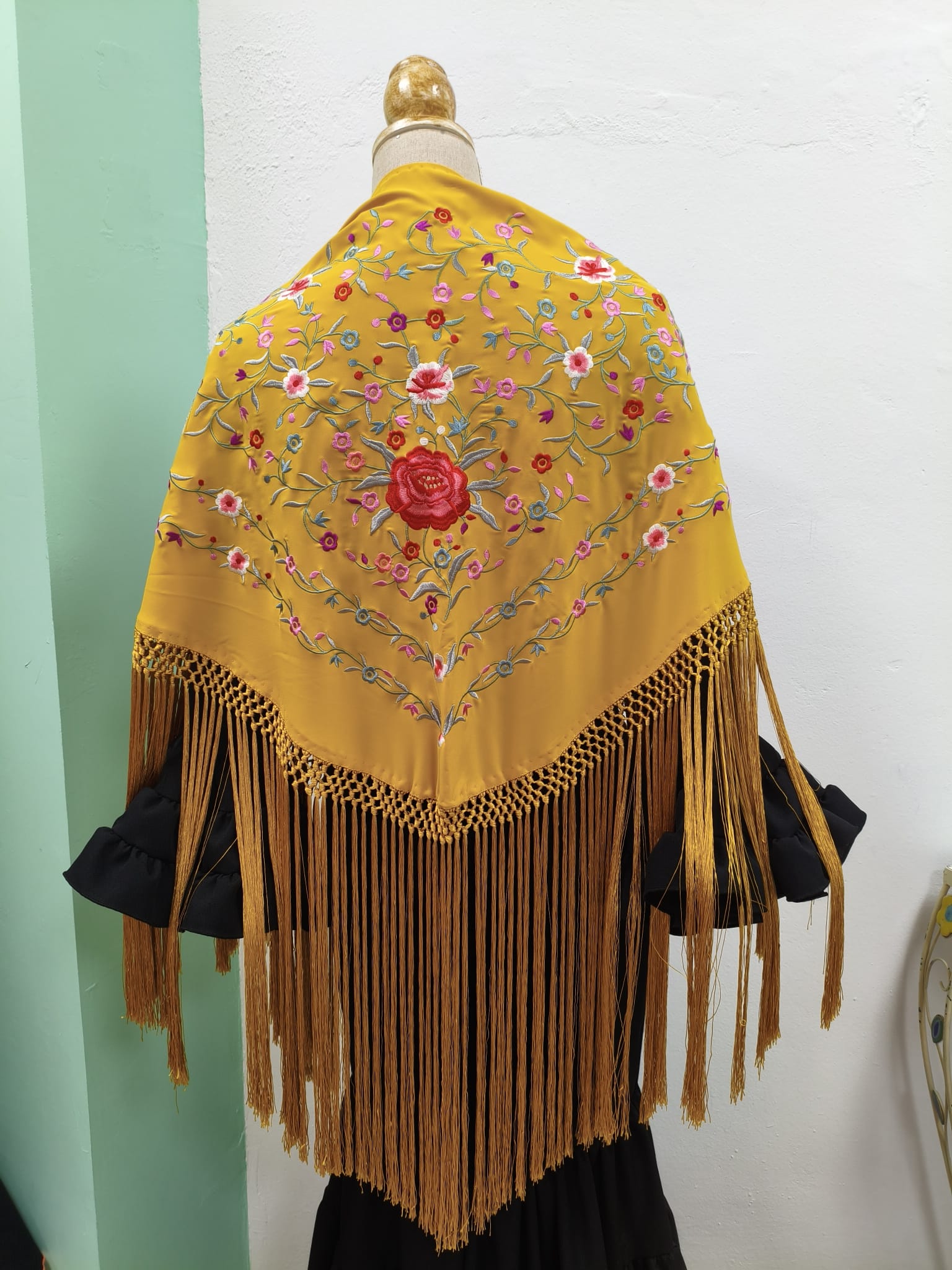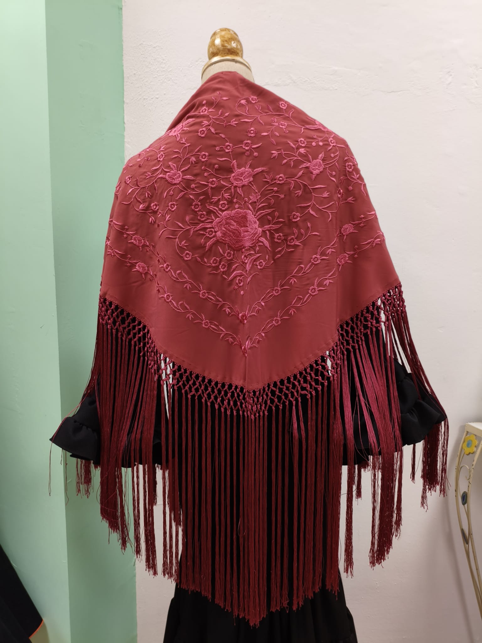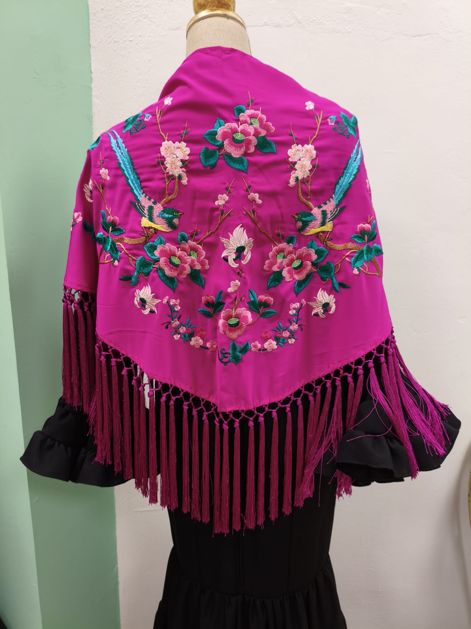 MANTON BORDADO Y FLECADO CON FLECOS MEDIO LARGOS, ESTILO Y ELEGANCIA.