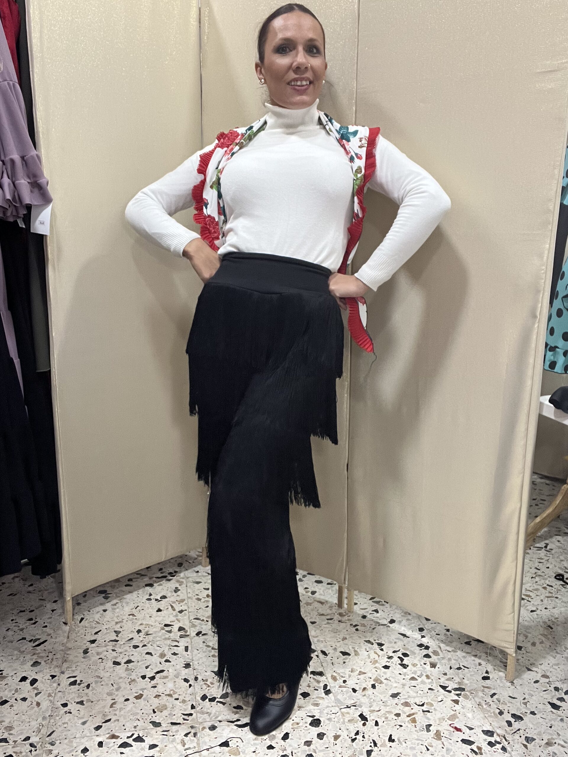 Pantalón totalmente lleno de flecos , tela de calidad de Holanda , flecos de calidad extrema. Cinturilla reductora elástica , cómoda y con altura de unos 15-20 cm. Largo del pantalón 1 mtr aprox. Se hace precio para grupos 678050534 SOLO WASAP