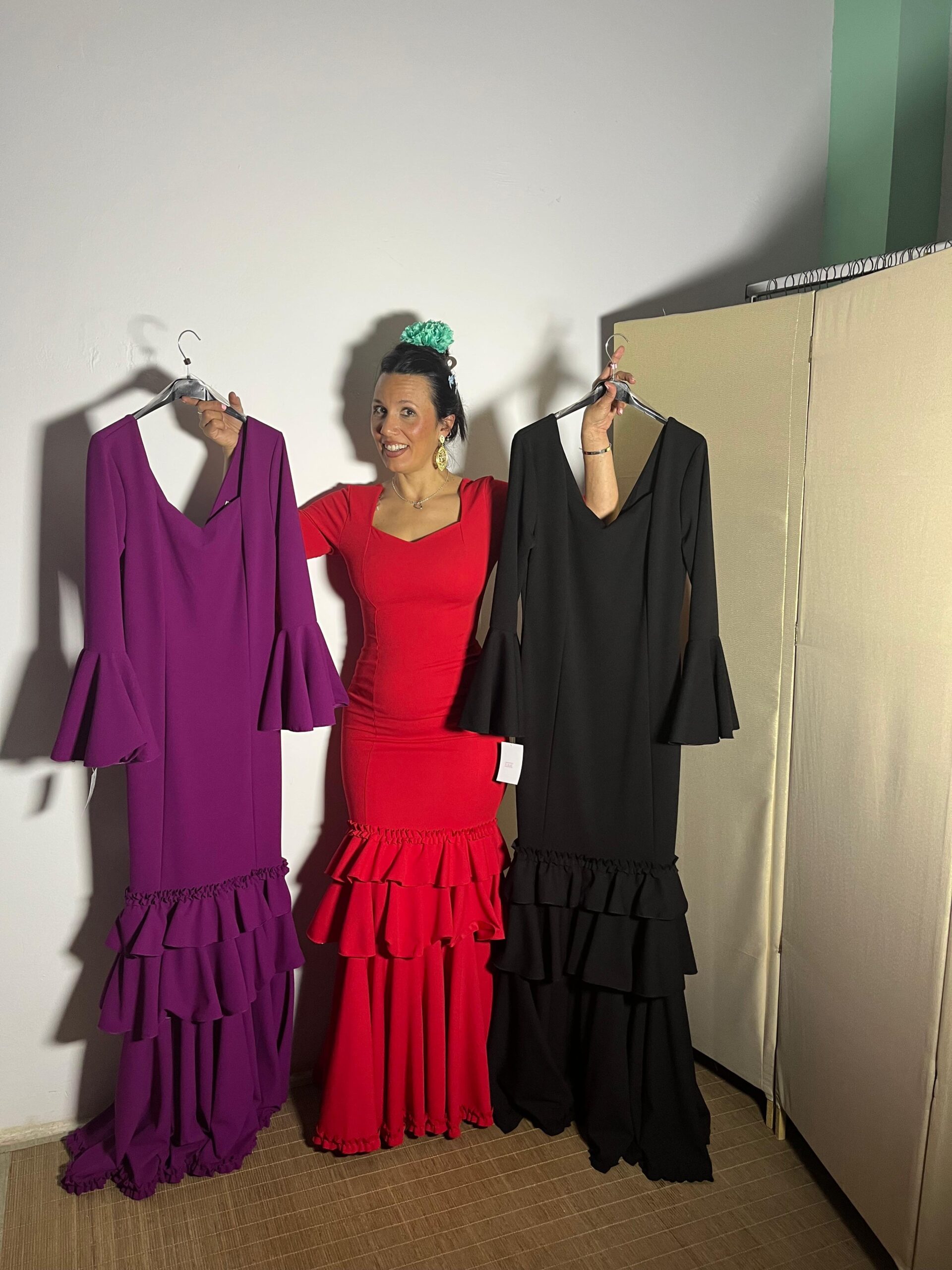 Vestido con plena comodidad elastico y 3 volantes con carruca , cosa cómoda y divina .