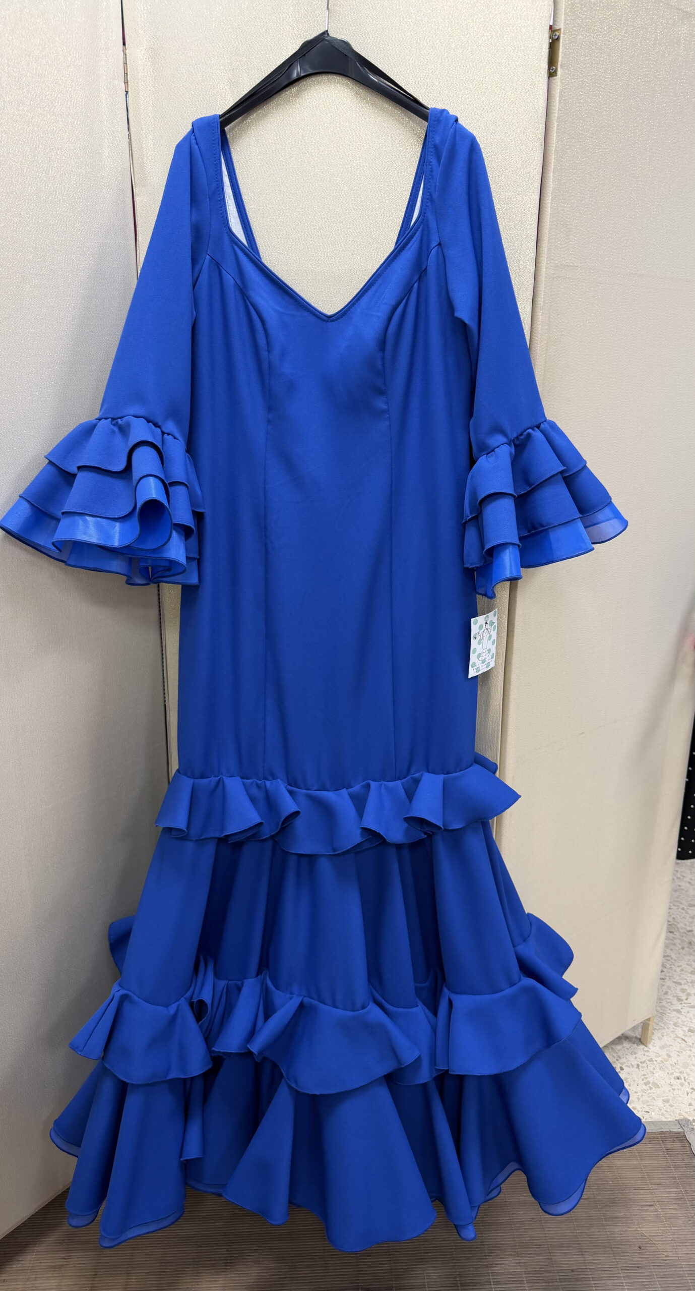 El vestido cuenta con amplia cantidad de tejido en los laterales (8 + 8) que permite mayor vuelo y comodidad al caminar o bailar. Confeccionado con tallaje industrial, ofrece un ajuste cuidado y una excelente calidad en los acabados.
